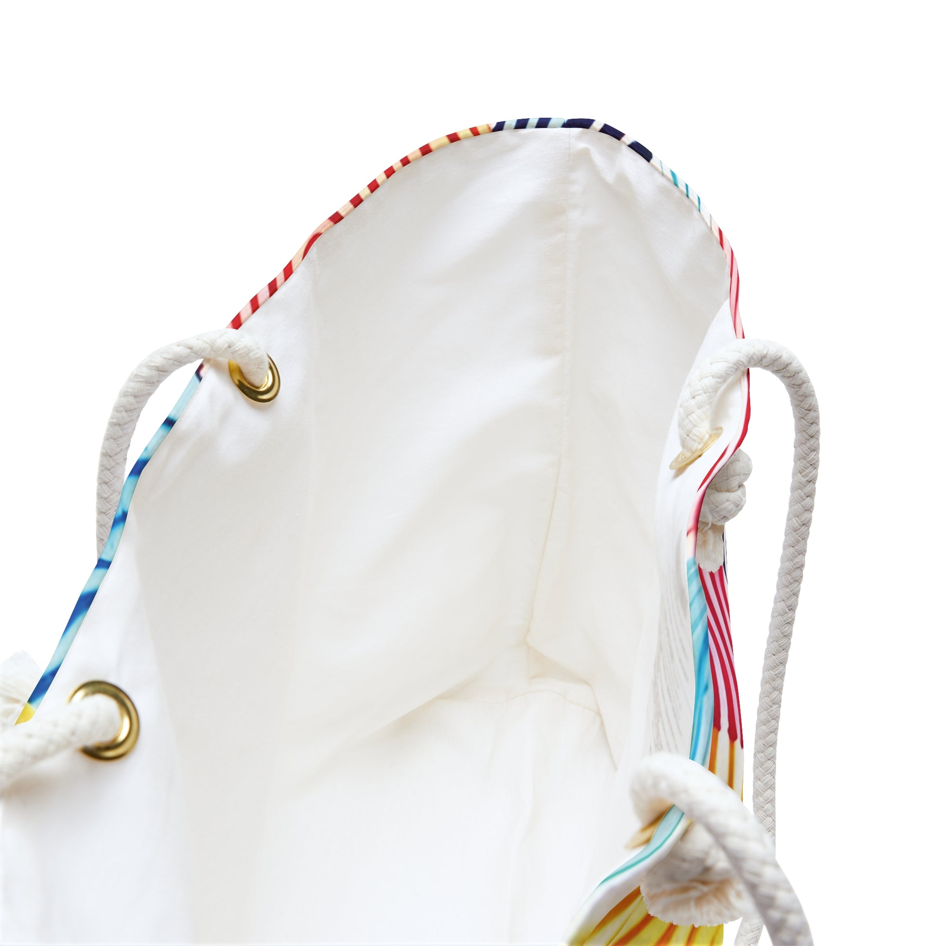 Bright, roomy, and ready for weekend escape. This roomy weekender carries a splash of hand-painted energy — swirling, fingerprint-like circles in sunlit yellows, coral reds, ocean blues, and leafy greens. The soft cream rope handles sit comfortably over your shoulder while the wide T-bottom keeps the bag steady on sand, train platforms, or market stalls. Inside, a cream sheeting lining gives a subtle contrast and a tidy finish, while the durable spun polyester exterior resists wrinkles so it stays vibrant and relaxed between trips. Pack swimsuits, a light jacket, a paperback, and snacks — this bag settles into the rhythm of short getaways, beach mornings, or spontaneous market runs. Product features - Durable 100% spun polyester exterior—wrinkle-resistant and colorfast - Cream 27" cotton rope handles threaded through gold-tone grommets - Spacious one-size T-bottom design: 24" x 13" - Cream 50/50 cotton-poly interior sheeting for a neat finish - Assembled in the USA from globally sourced parts; size tolerance ±0.75" Care instructions - Before cleaning the bag, remove all the items from the bag. Suggested to pretreat visible stains with stain remover. Mix warm water with laundry detergent and clean the bag with terry washcloth or soft bristle brush. Let the bag air dry.