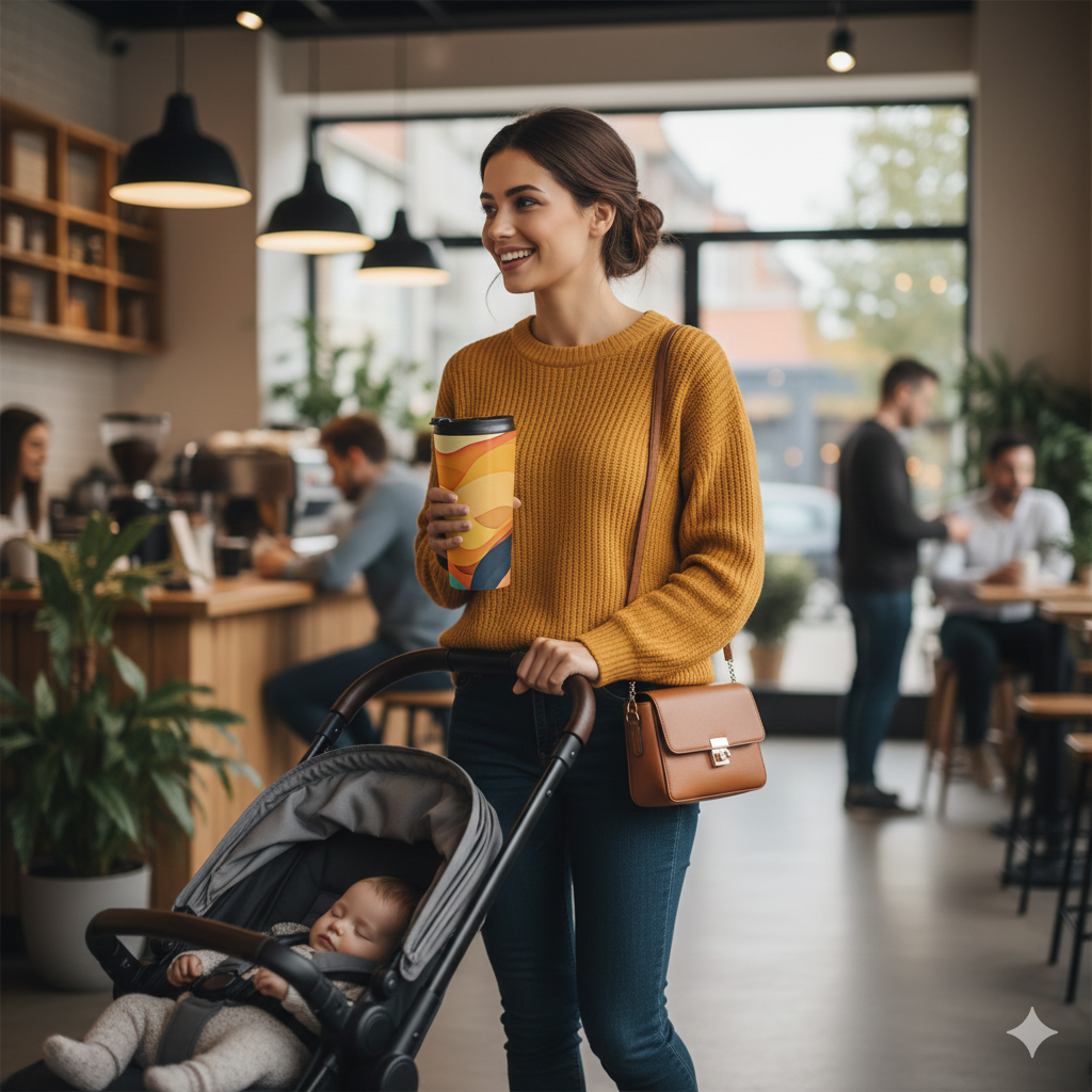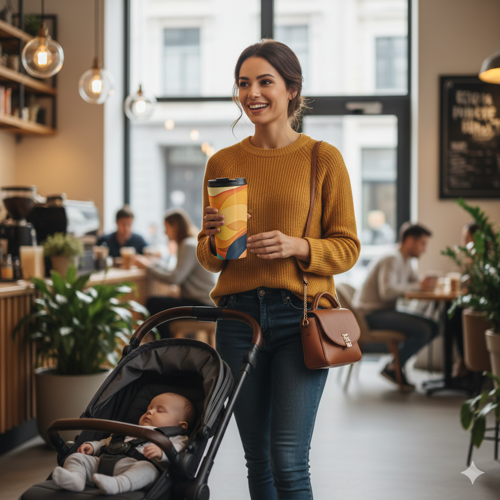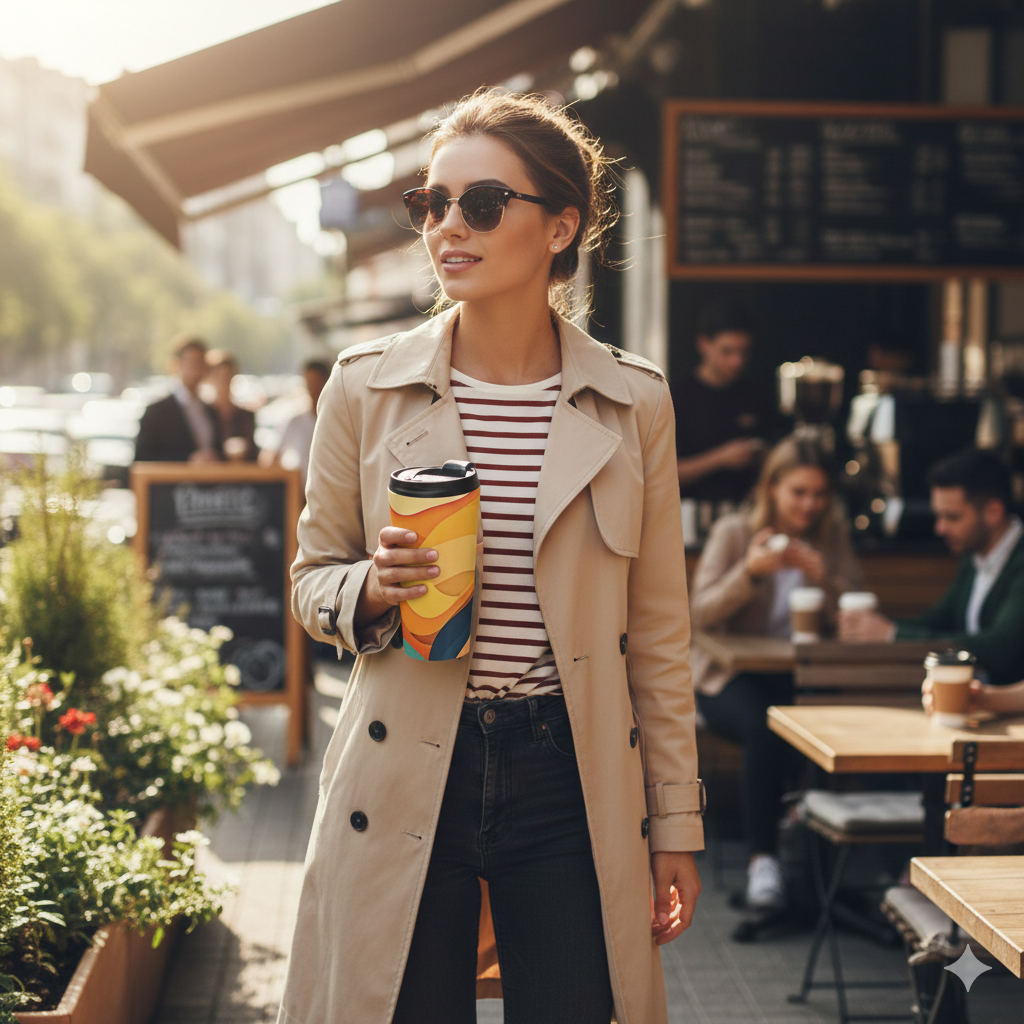 Wrap your hands around warm color and steady insulation. This 15oz stainless steel travel mug carries a layered, retro-inspired sunset — warm yellows, oranges and deep teal — that feels like slow light over a road trip horizon. The vacuum-insulated body keeps drinks at the right temperature while the BPA-free flip-top lid locks in peace of mind during the commute. Rounded edges and a slim profile slide easily into cup holders and backpacks. Use it on early mornings, long drives, or on a desk when you want a little sunlit calm in your day.