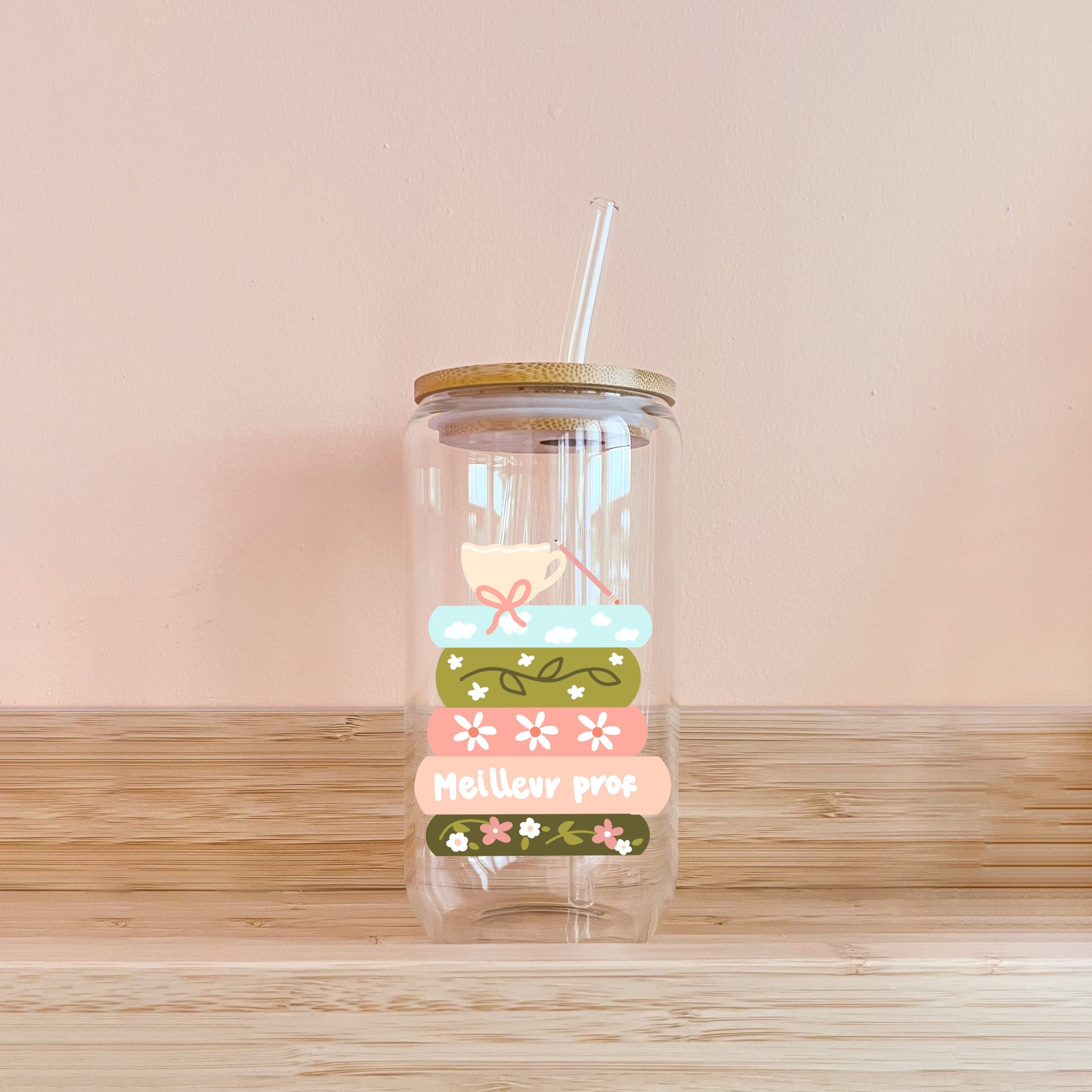 Offrez un verre illustré rempli de douceur et de reconnaissance à celle qui a tant donné cette année. Parfait pour dire merci à une enseignante exceptionnelle, ce verre unique allie utilité et esthétisme. Chaque illustration est pensée pour faire sourire et rappeler à quel point son travail compte. Idéal pour le café glacé du matin, ou le verre d'eau de l'après-midi...ou un petit moment bien mérité à la fin de la journée 🍎